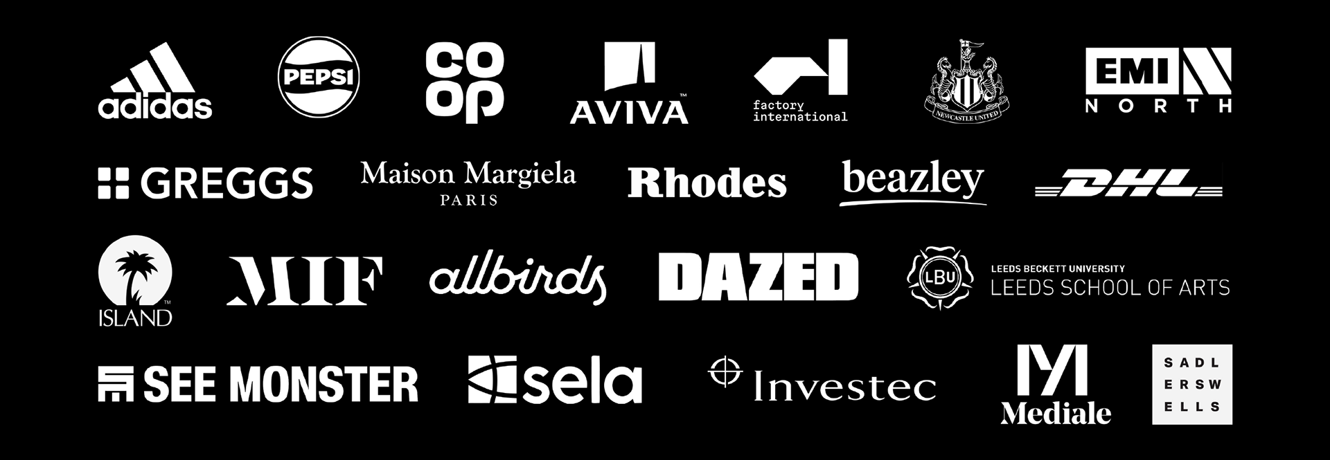 I've had the chance to work with amazing brands like Adidas, Maison Margiela, Greggs, Newcastle United, Rhodes & Island Records.